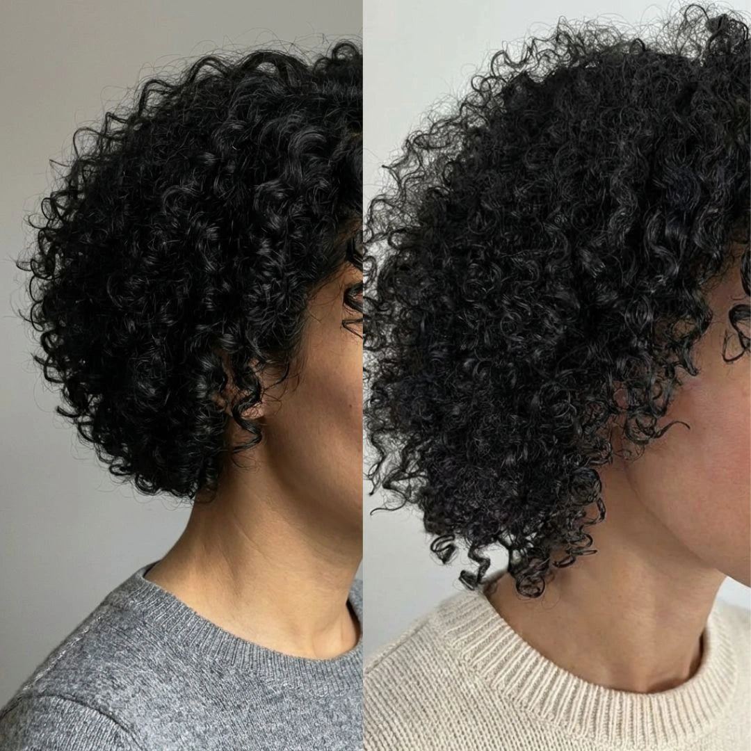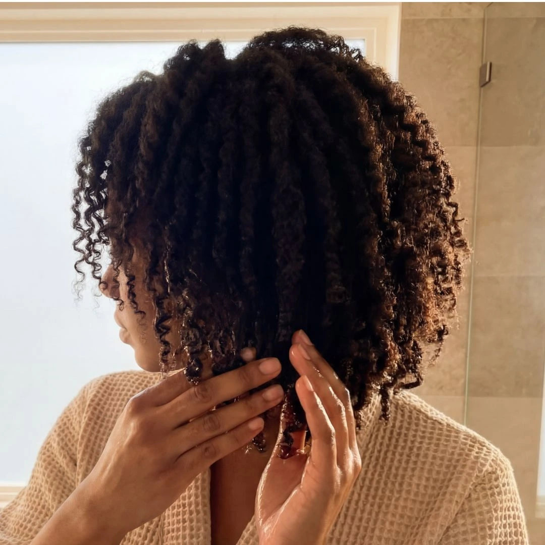 Leur belle forme en boucle est aussi un défi: le sébum et les huiles naturelles n’arrivent pas à glisser tout au long du cheveux. Les pointes restent sèches, les longueurs manquent de nutrition. Résultat : cheveux secs, ternes, fragiles, qui stagnent au même niveau.
