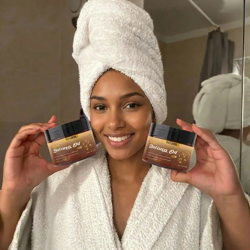 L’huile de Batana, riche en omégas 6 et 9 ainsi qu’en vitamines A et E, pénètre en profondeur pour nourrir et stimuler vos follicules capillaires. En améliorant la micro-circulation et en bloquant naturellement la production de DHT, responsable de la chute des cheveux, elle crée un environnement sain pour une repousse plus rapide.
