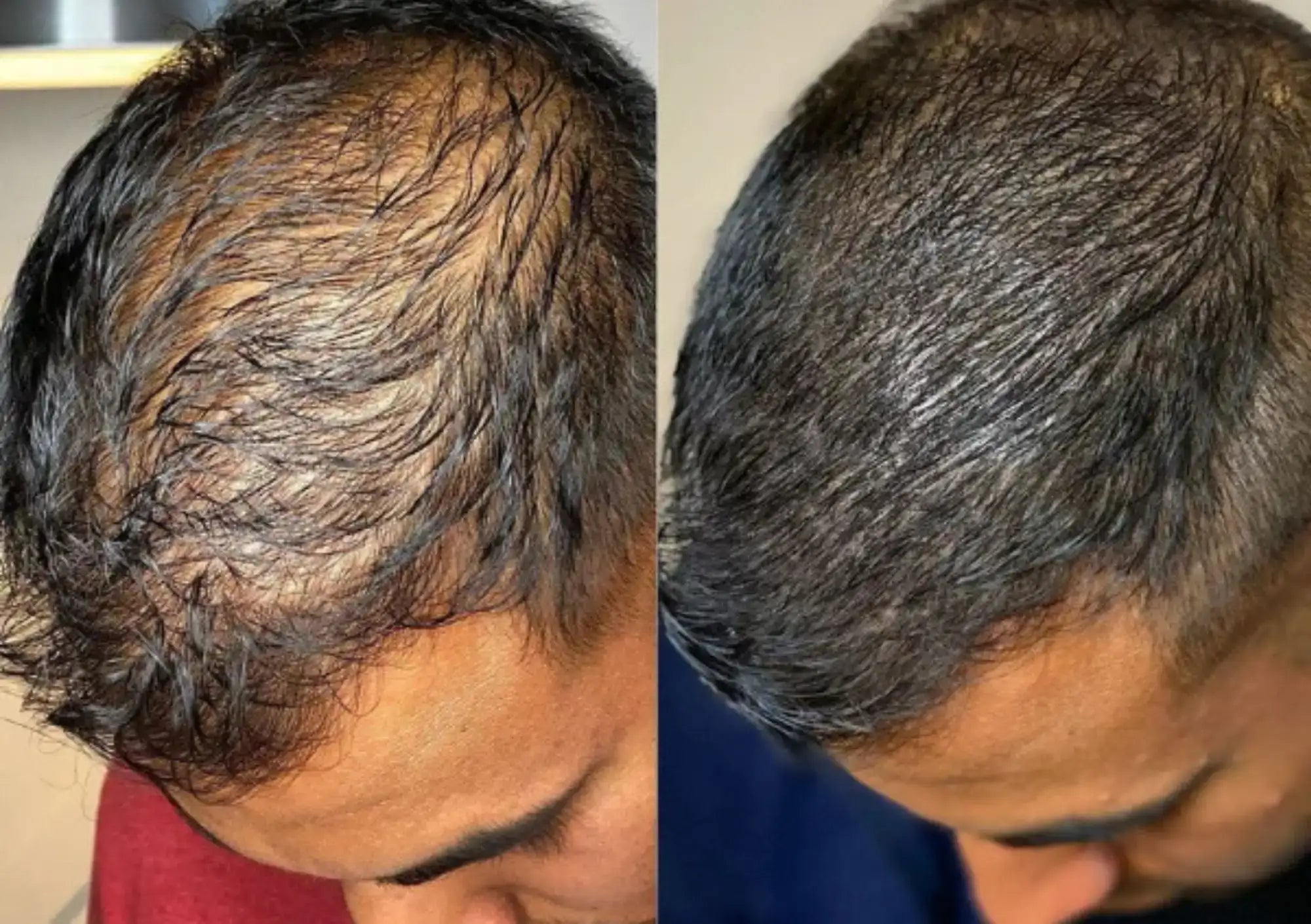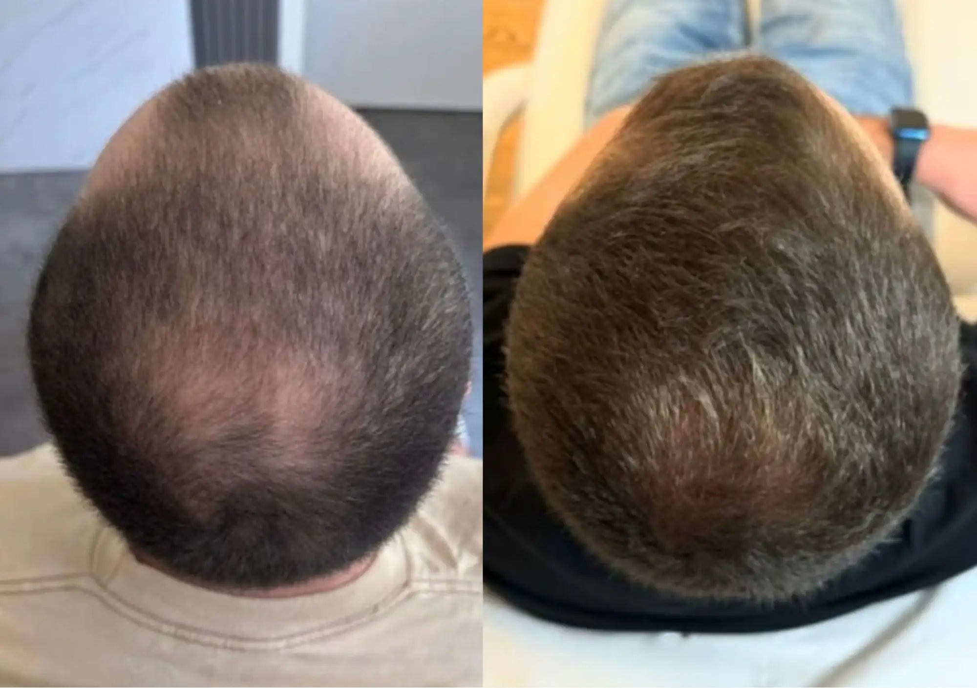 La ligne frontale s’affirme, le volume s’uniformise et la chevelure affiche une densité plus régulière et durable, reflet d’un cuir chevelu revitalisé.